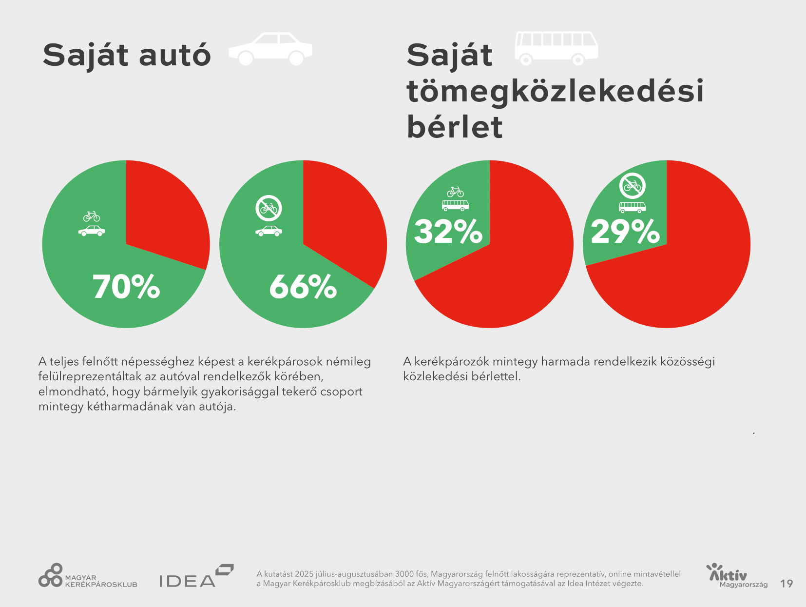 A kerékpározók mintegy harmada rendelkezik közösségi közlekedési bérlettel.