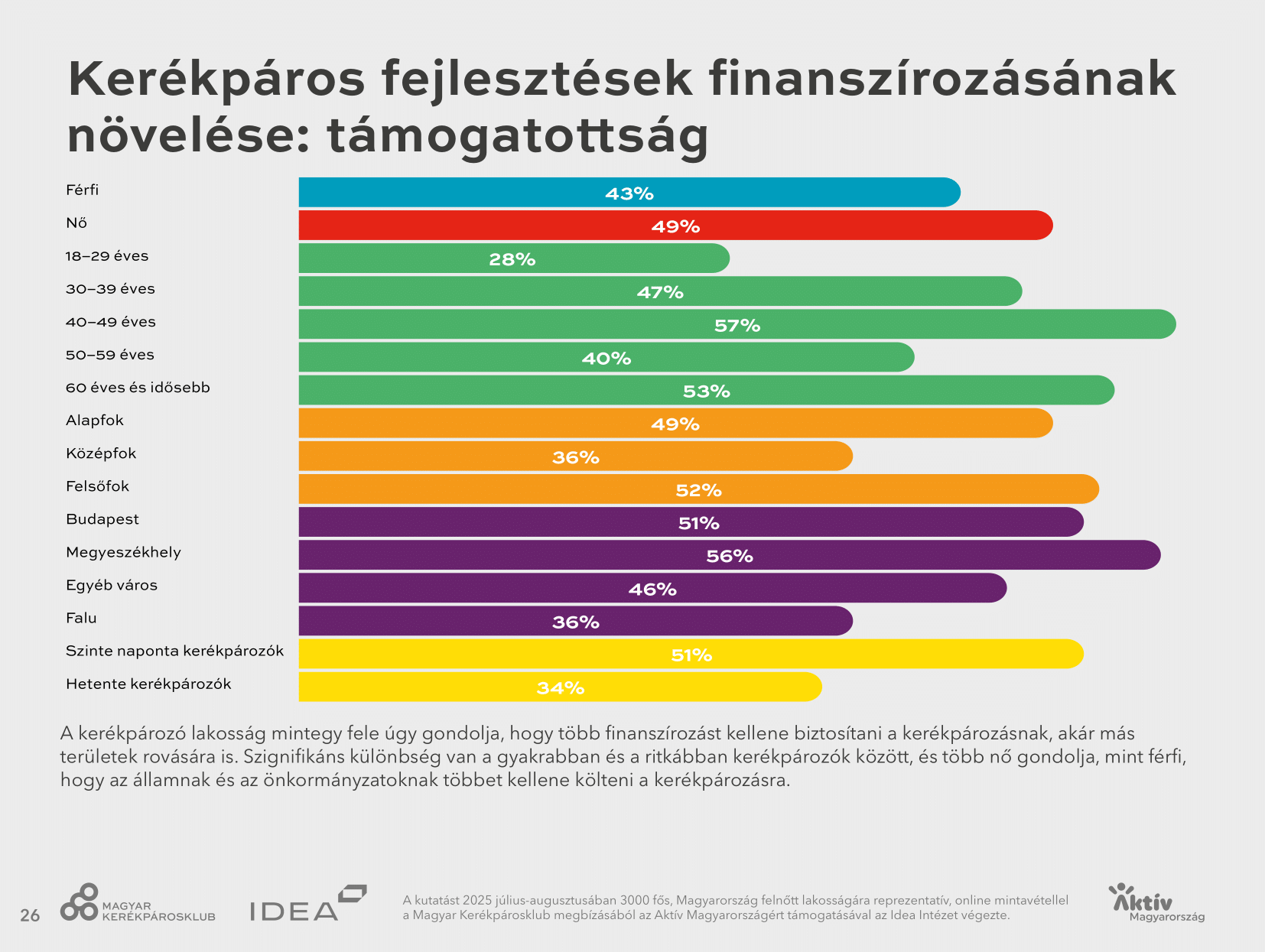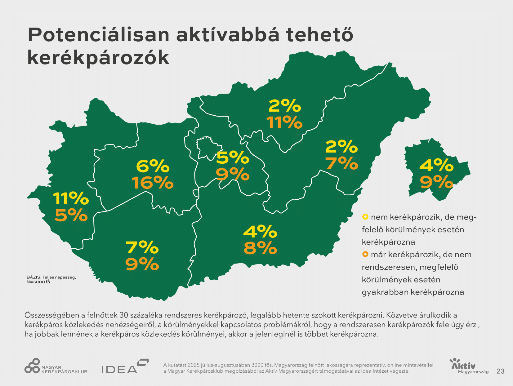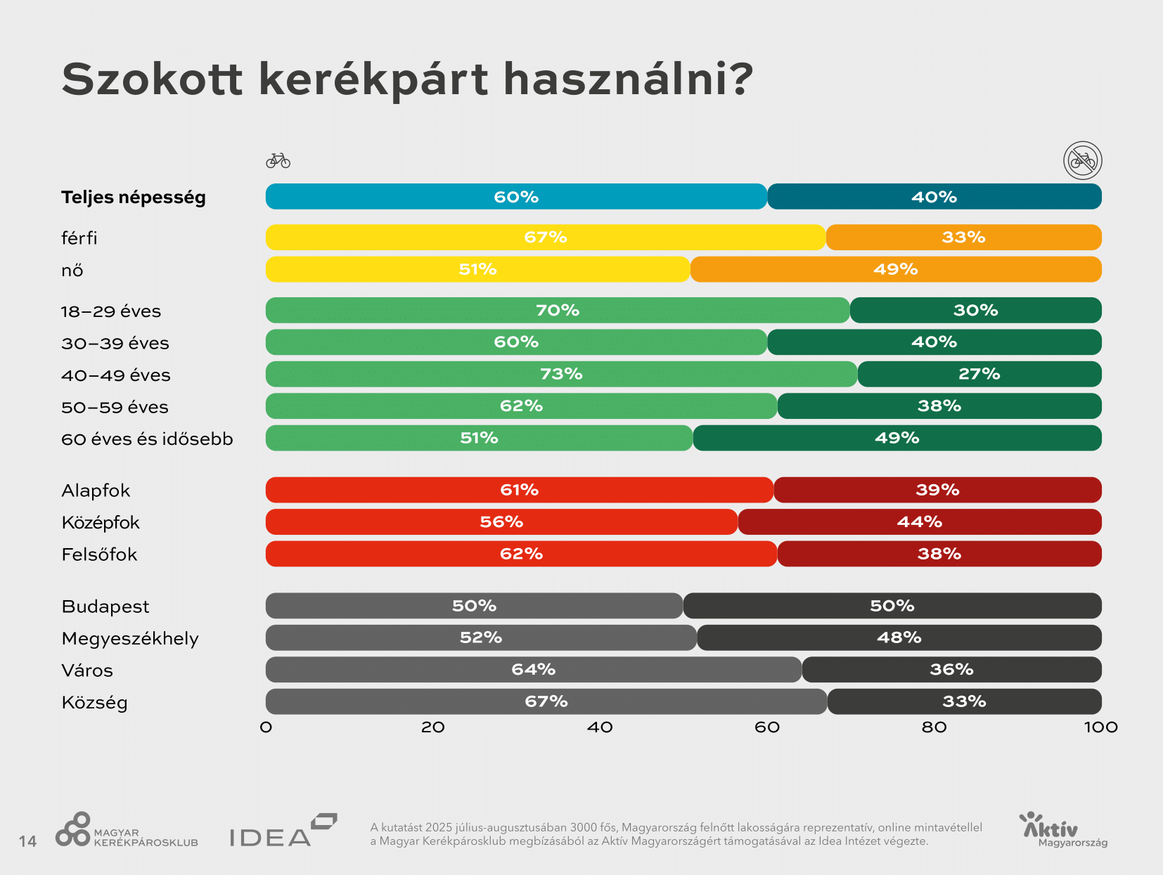 Az „Így bringázik Magyarország 2025” című reprezentatív felmérést az Aktív Magyarország támogatásával a Magyar Kerékpárosklub megbízásából az Idea Intézet készítette 3000 ember online megkérdezésével. A kutatás 2018 óta vizsgálja a hazai kerékpározási szokásokat, motivációkat és a bringázás társadalmi megítélését.