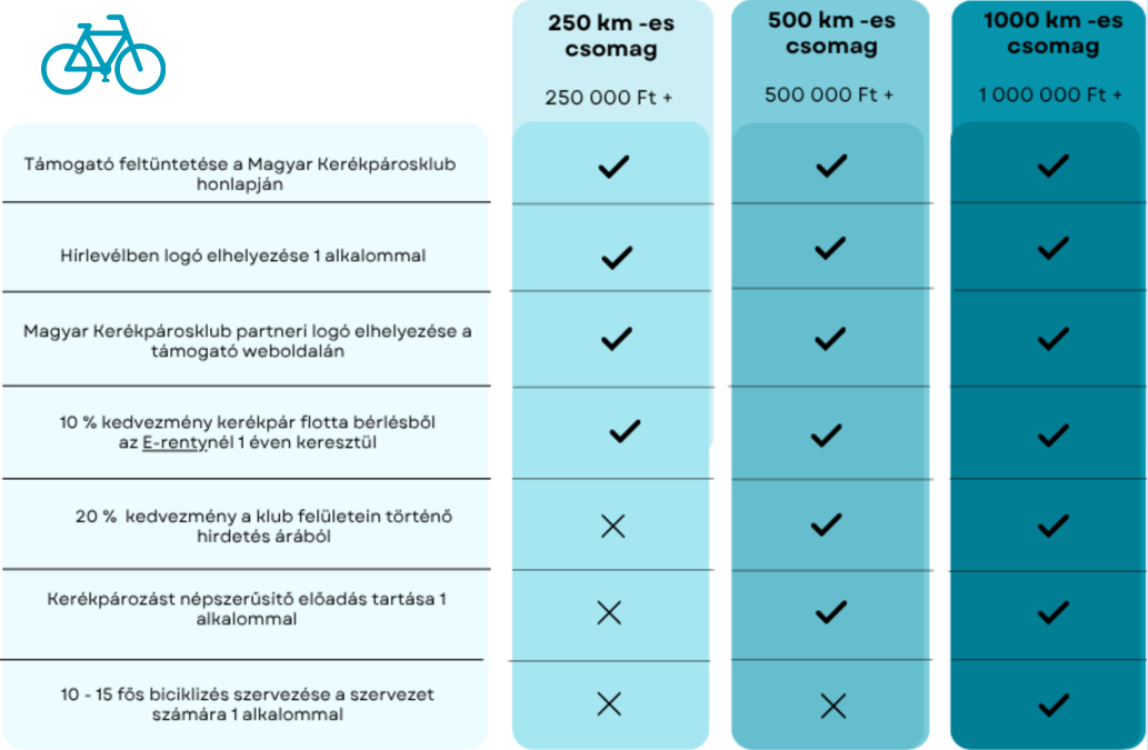 A támogatás részleteiről szerződést készítünk. Amennyiben szeretnének a Magyar Kerékpárosklub pártoló tagjává válni, vegyék fel velünk a kapcsolatot az info@kerekparosklub.hu email címen keresztül!