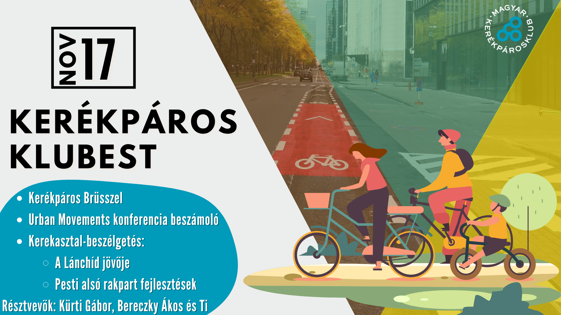 Sok szeretettel várunk az első Klubestünkre november 17-én, ahol bemutatjuk nektek, hogy milyen is a ‘Kerékpáros Brüsszel’, beszámolunk az Urban Movements konferencián szerzett tapasztalatokról, majd egy kerekasztal-beszélgetés során kitárgyaljuk, hogy milyen elképzelésünk van az új Lánchíd forgalmi kialakításáról, valamint a pesti alsó rakpartot érintő fejlesztésekről beszélgetünk.