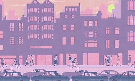 "A városi élet egyszerre szól a tájon való áthaladásról és a benne létezésről" Illusztráció: Francesco Bongiorni; Guardian.