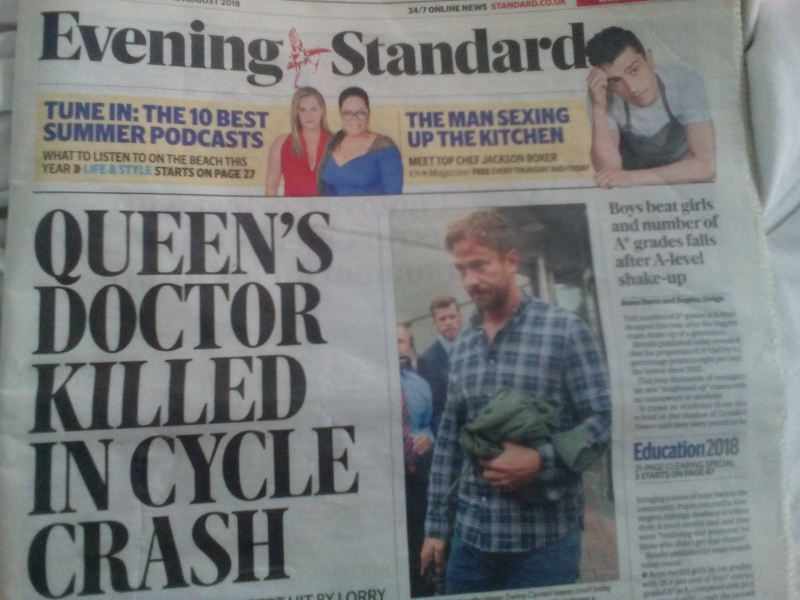A cikkből kiderül, hogy a királynő orvosát London központjában ütötte el egy teherautó biciklizés közben, és nem élte túl. A videóból is látszik amúgy, hogy a teherautók elég lendületesen döngetnek az utcákon, és általában ez a forrása a legtöbb halálos kerékpáros balesetnek.