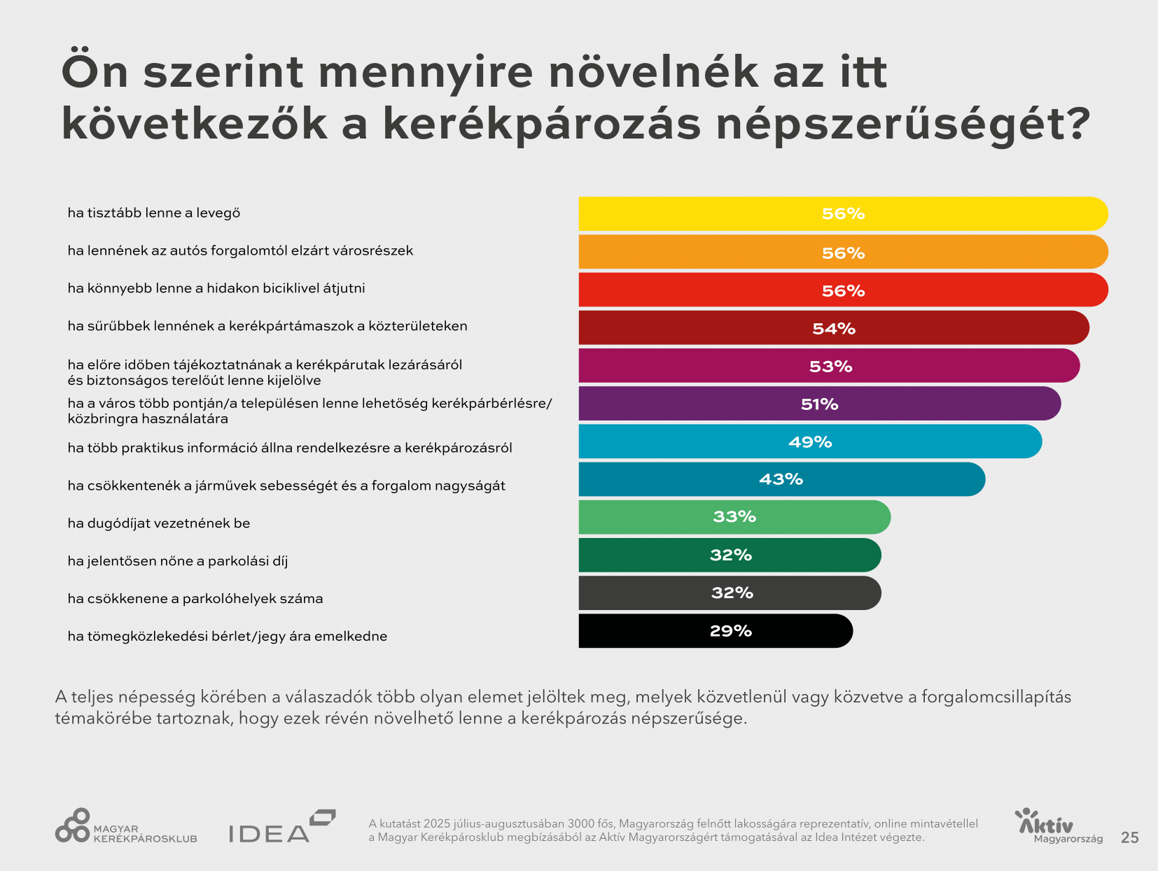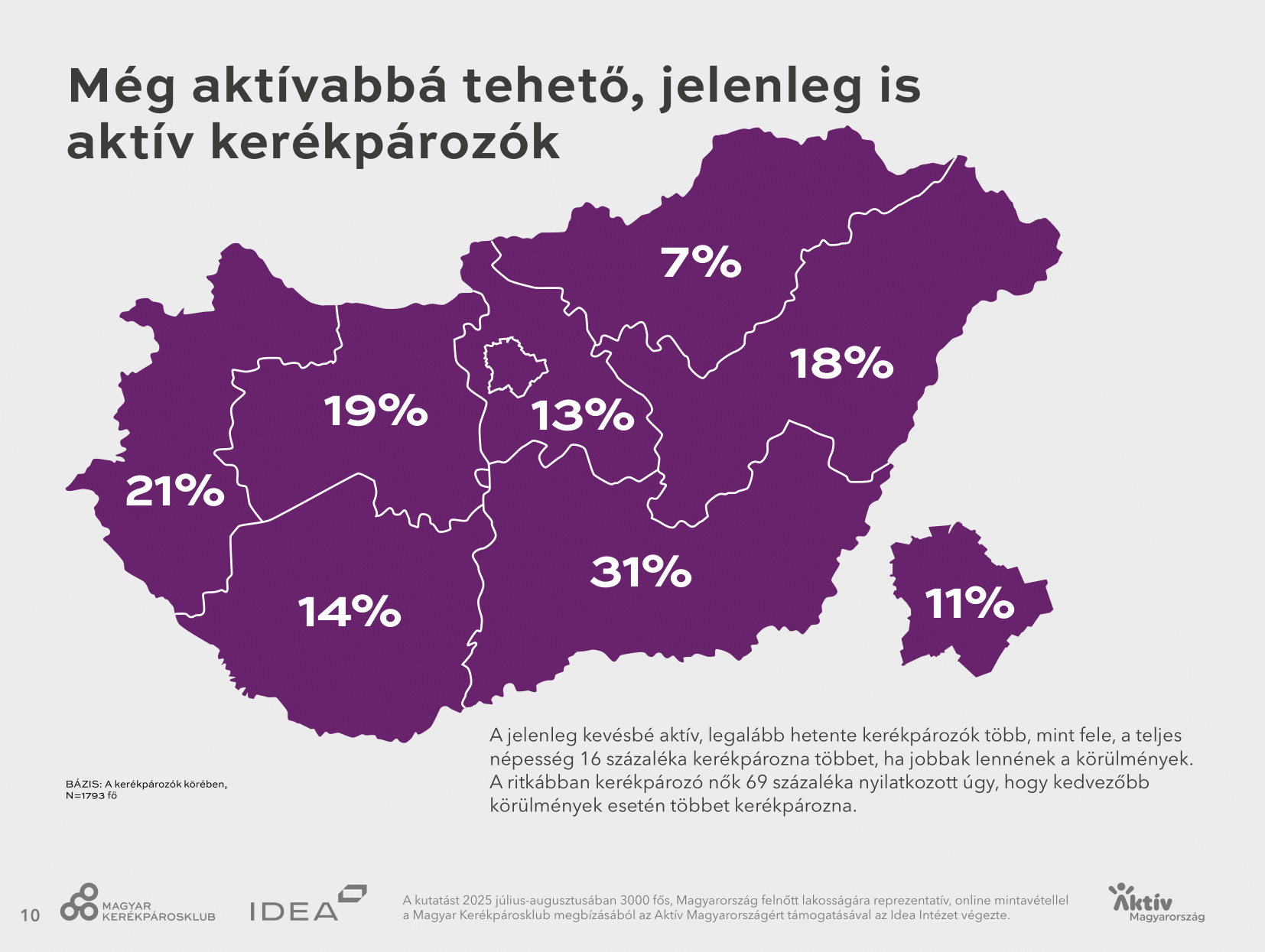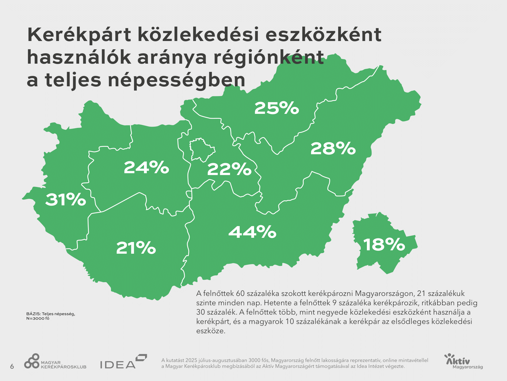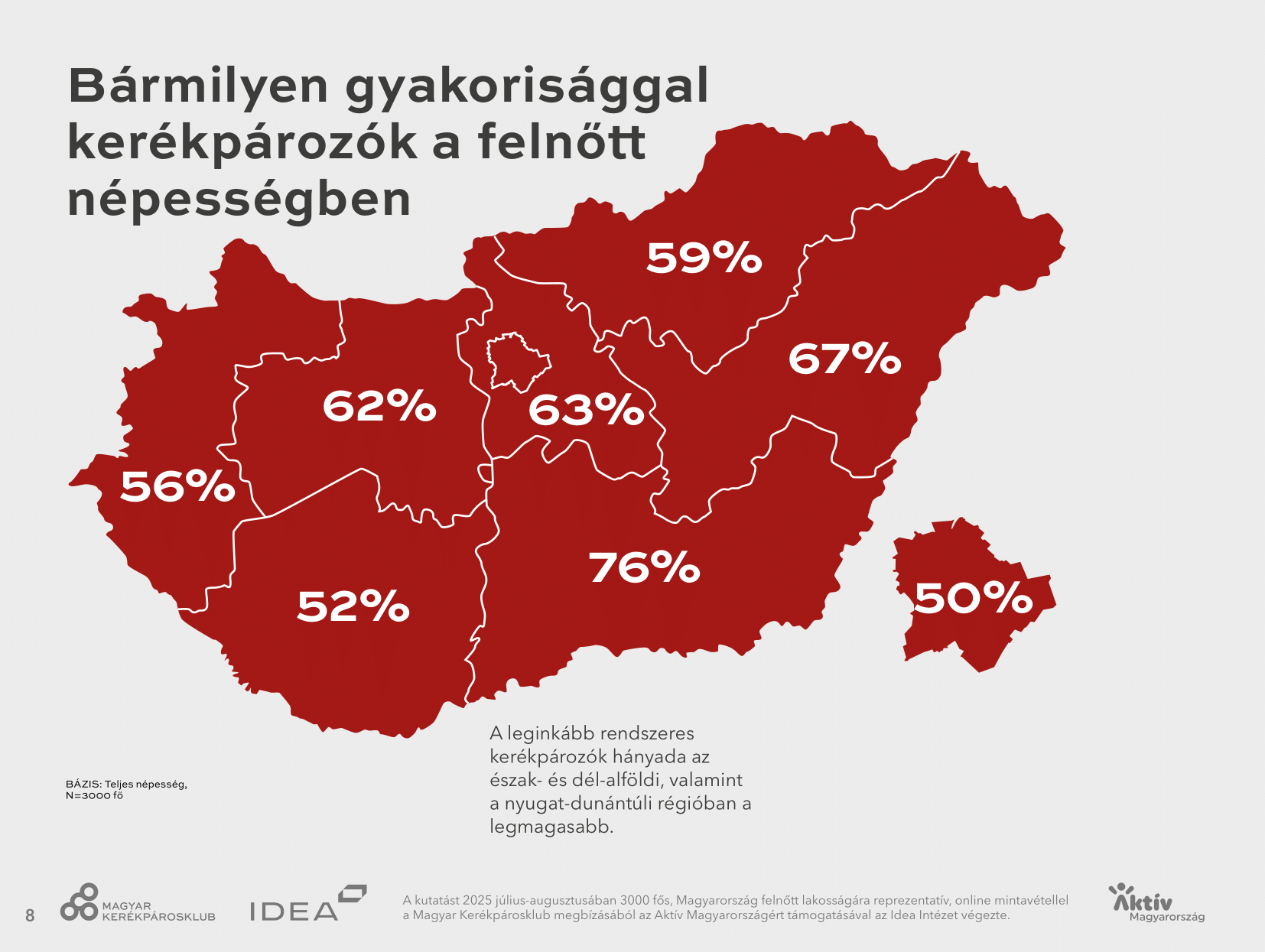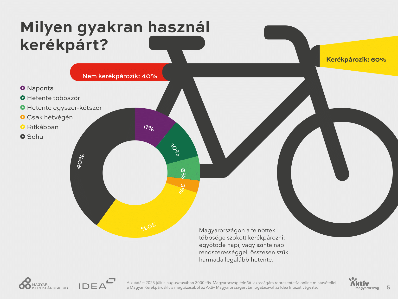 Az „Így bringázik Magyarország 2025” című reprezentatív felmérést az Aktív Magyarország támogatásával a Magyar Kerékpárosklub megbízásából az Idea Intézet készítette 3000 ember online megkérdezésével. A kutatás 2018 óta vizsgálja a hazai kerékpározási szokásokat, motivációkat és a bringázás társadalmi megítélését.