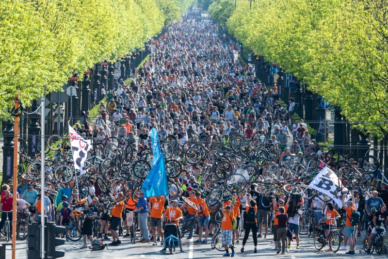 A Tabánból induló örömtekerést és demonstrációt René van Hell Hollandia új nagykövete részvételével nyitották meg. A nagykövet hangsúlyozta, hogy már 10 éve támogatják a magyar kerékpározás fejlesztéséért végzett munkát. A nagykövetség segít megismerni és alkalmazni azokat a jól bevált megoldásokat, amiknek köszönhetően Hollandiában már több kerékpár van, mint ahányan laknak. A nagykövet holland bringával, elegánsan tekerte végig a menetet.