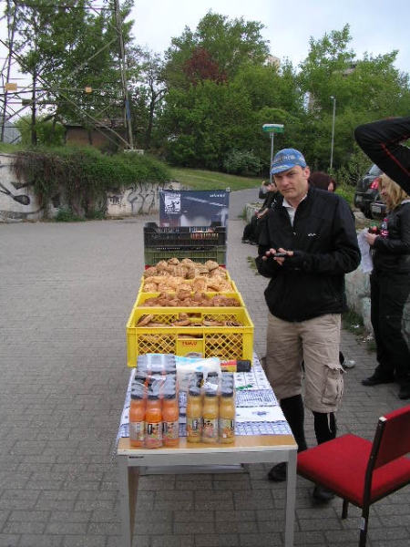 Ennek ellenére, amikor nem sokkal kilenc előtt elkezdtem volna kipakolni a felszerelést, már jópár kerékpáros várta az indulást. Ezért aztán csak a legsürgősebbeket raktam ki, és neki is kezdtem a sütik osztásának.