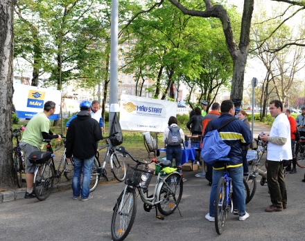 A Bam! kampányban több éve partner MÁV Zrt. és a MÁV-START Zrt. idén először a bringásreggelik szervezésében is szerepet vállalt, és önálló helyszínnel vártuk a kerekezőket. Helyszínnek a MÁV Székházzal szemben található népligeti bringaút szakaszt választottuk, ahol a fák alatt kellemes reggeliző helyet találtunk. Reggel 6:30-tól kezdtük az asztalok, péksütik és szóróanyagok kipakolását, vicces látványt nyújthattunk, ahogy a Könyves Kálmán körúton vonszoltuk át a búrotokat.