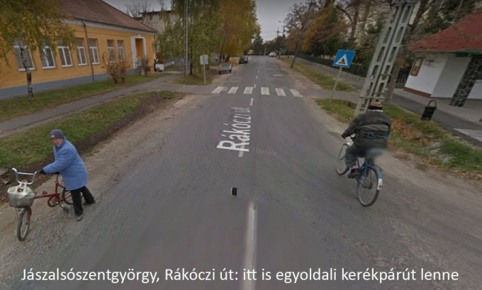 Jászalsószentgyörgyön a falut keresztülszelő 32-es útból leágazó Rákóczi út mellett épülne kerékpárút. A projekt költsége 150 millió Ft, hasznosságát pedig mindenki ítélje meg maga a Google Street View fotója alapján, ahol békében kerékpároznak az úttesten a falubeliek: